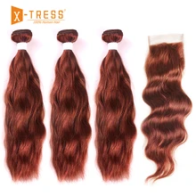 Buy Now Burgundy Red Color Natural Wave Human Hair Weave Bundles With Lace Closure 4x4 Brazilian Non-remy Hair Weft Extensions X-TRESS before expired and You will save 49% today