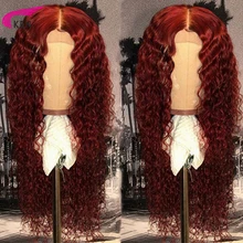 Buy Now KRN 99J 13x6 Lace Front wig Human Hair Burgundy Colored Human Hair Curly Wigs free Part Brazilian Lace Remy Wig for women before expired and You will save 38% today