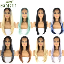 Buy Now 13x4 Lace Front Synthetic Wigs For Black Women SOKU 22 24 26 Inch Ombre Blonde Brown Black Straight Lace Wigs Heat Resistant Wig before expired and You will save 45% today