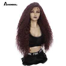Buy Now ANOGOL Natural Long Wine Burgundy Kinky Curly Synthetic Lace Front Wig with Baby Hair Heat Resistant Wigs Middle Part for Women before expired and You will save 15% today