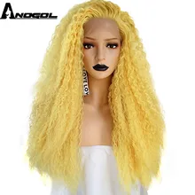 Buy Now Anogol Yellow Orange Free Part High Temperature Fiber Natural Long Kinky Curly Synthetic Lace Front Wig For African American before expired and You will save 25% today