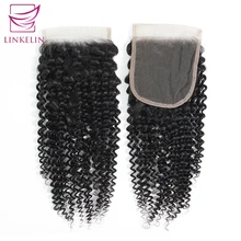 Buy Now LINKELIN HAIR Kinky Curly Closure 4*4 Free/Three/Middle Part Remy Human Hair Bundles 8-20 inch Swiss Lace Closure Nature Color before expired and You will save 45% today