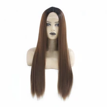 Buy Now Synthetic Lace Front Wig Long Straight Ombre Brown Women's Wigs with Baby Hair Heat Resistant African American Wig Middle Part before expired and You will save 28% today