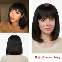 Buy Now Wignee Short Straight Bob Human Hair Wigs With Free Bangs For Black Women 150% High Density Brazilian Hair Short Bob Human Wigs before expired and You will save 46% today